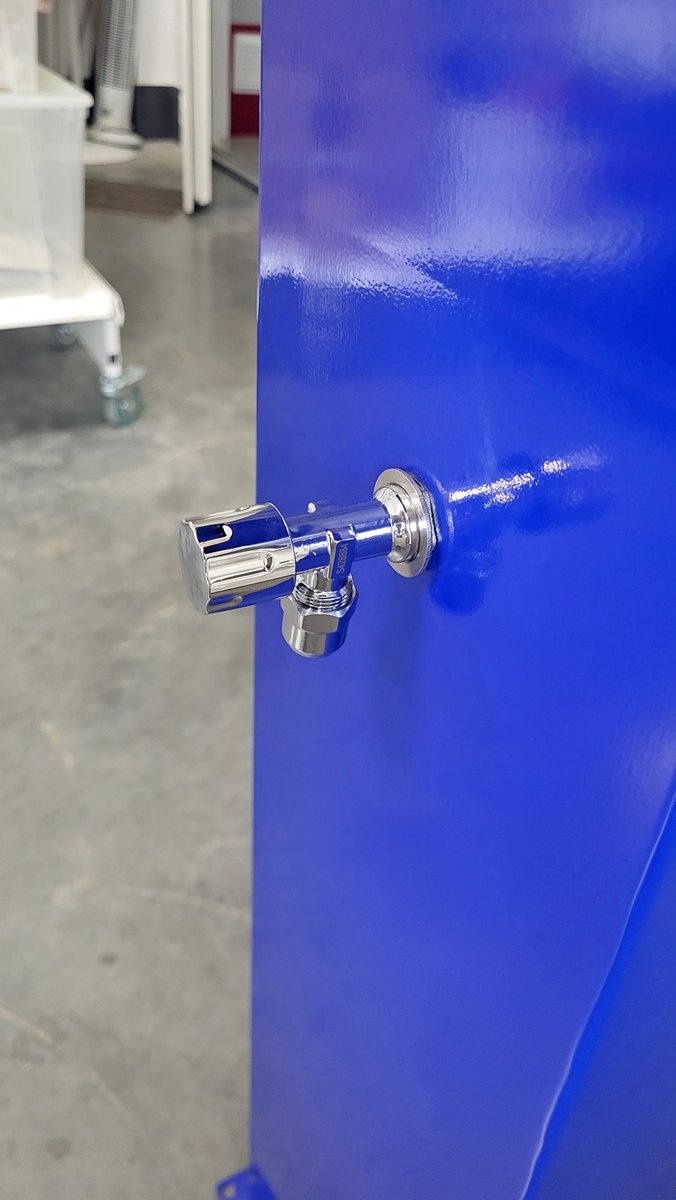 С краном подачи воды. Цвет корпуса синий. Без подсветки. Корпус оцинкованная жесть. Размер основания 235*235 мм.