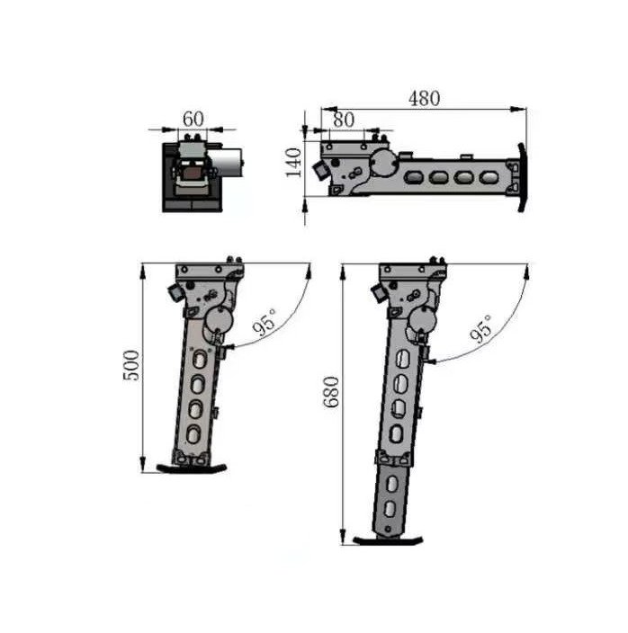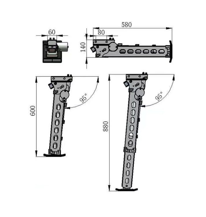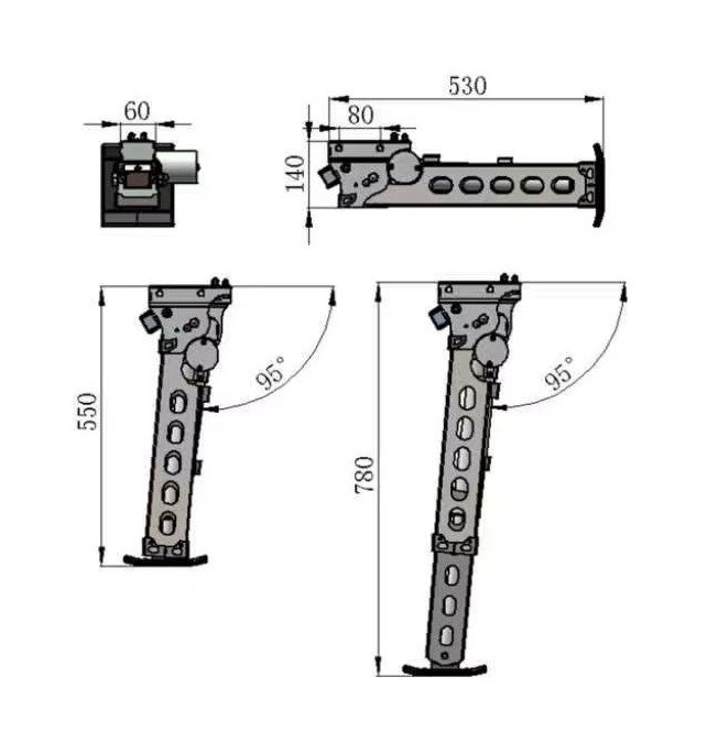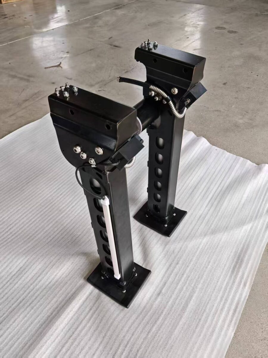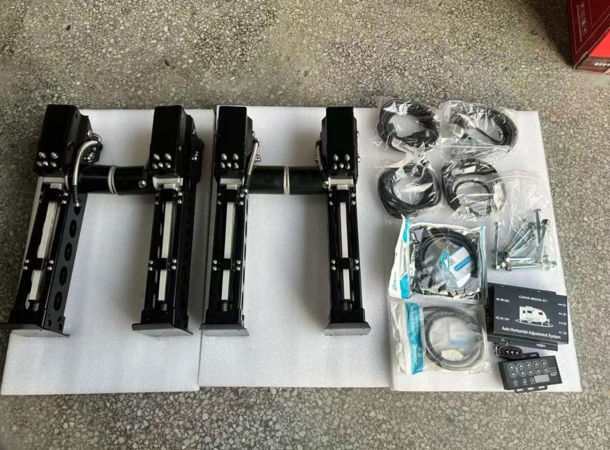 Система откидных опор с электроприводом Campfort Stabilizer Jack для кемперов и караванов. В комплекте: 4 опоры с электродвигателем, коммутационный блок, пульт ДУ, панель управления, проводка.