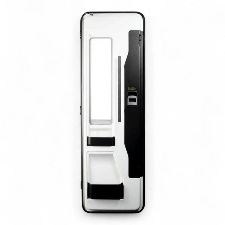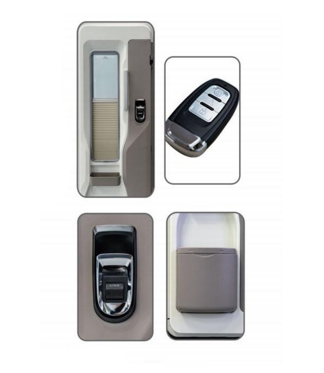 Посадочный размер 620*1920 мм. Сверху и снизу радиусные углы R 90 мм. Фиксация закрытого положения в двух точках. Для толщины стены 28-36 мм. Двойное акриловое окно с солнцезащитной шторкой. Петли справа. Электронный замок с пультом ДУ. Корзина для хранения.
