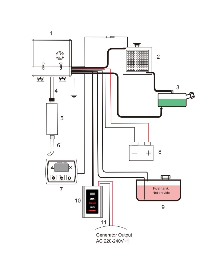 Стартовый аккумулятор в комплект не входит. Топливный бак приобретается дополнительно.