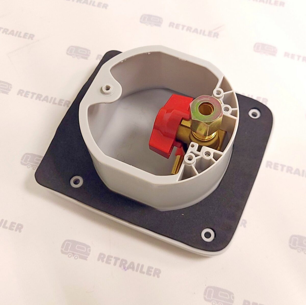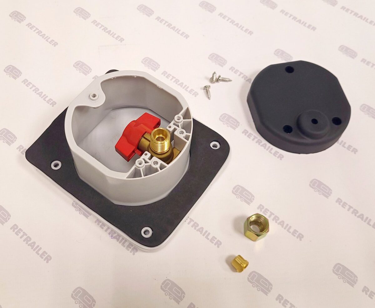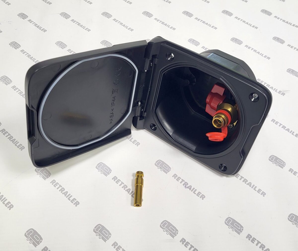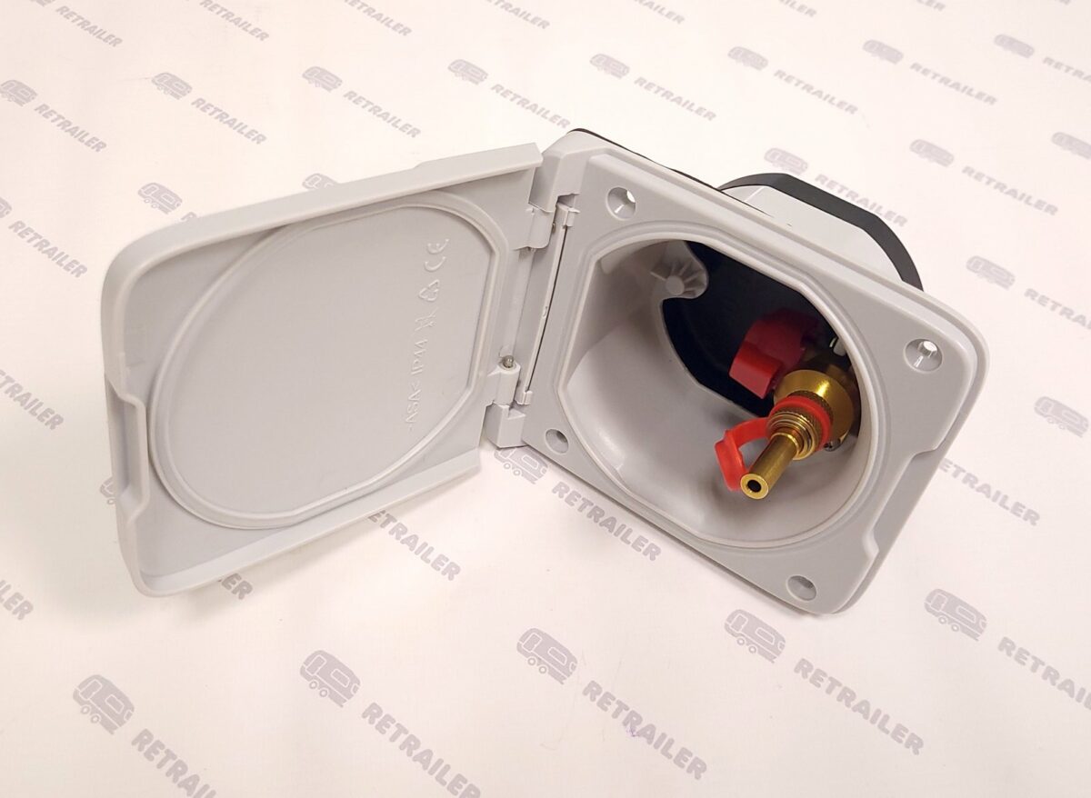 Газовый лючок. Устанавливается на боковой стене каравана для быстрого подключения к общей газовой магистрали внешний потребителей. Снабжен устройством быстрого соединения, а так же вентилем, перекрывающим газ. Такое устройство позволит вам за считанные секунды подключить газовый гриль без каких либо дополнительных баллонов и редукторов (они уже установленные на караване).