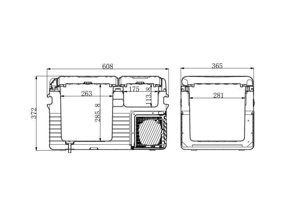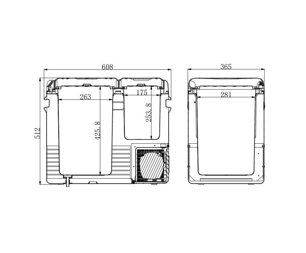 Двухкамерный. Общий объем камер 25.5 л. Питание 12/24/230 В/ Мощность 45 Вт. Встроенные колеса и ручка для перемещения.