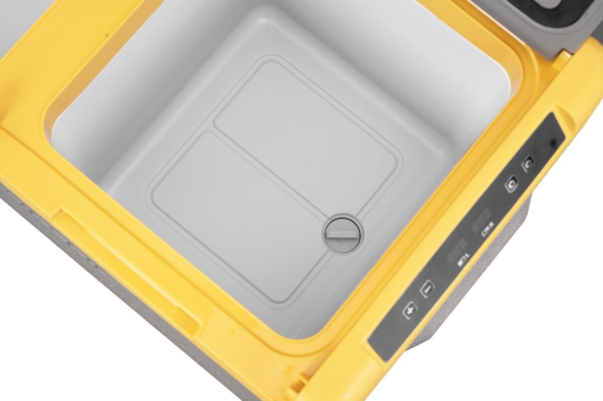 Компрессорная система охлаждения обеспечивает стабильную работу в диапазоне от примерно –20 до +20 °C. Управление вынесено на корпус: через ЖК-панель можно задавать нужную температуру, выбирать режимы MAX для быстрого охлаждения или ECO для экономии энергии, а также контролировать работу защиты. Встроена многоступенчатая система безопасности для автомобильного аккумулятора и защита от перепадов напряжения, есть память последних настроек температуры.
