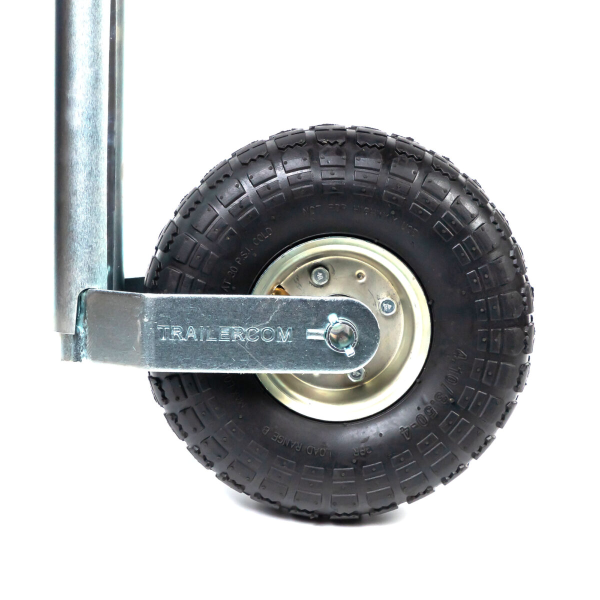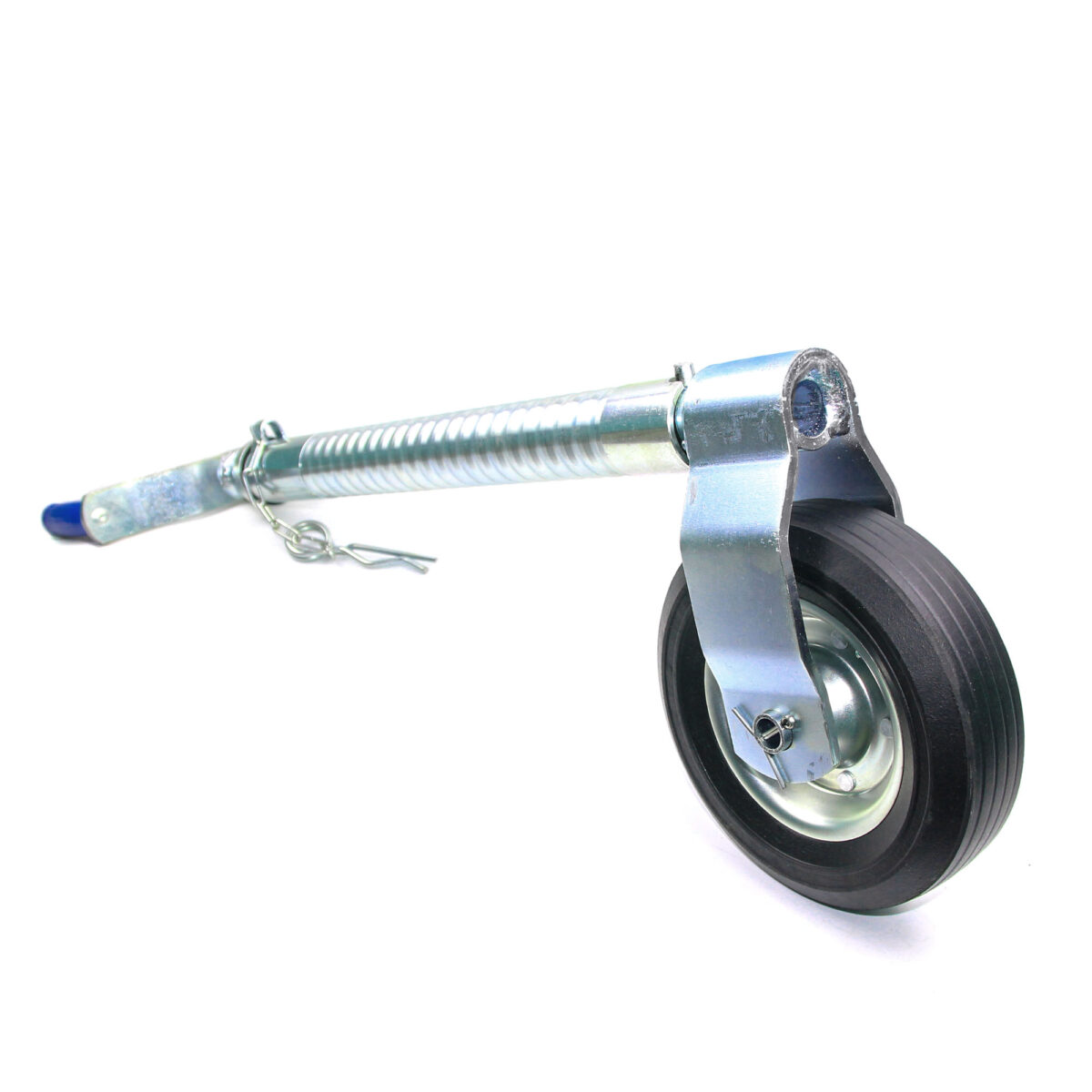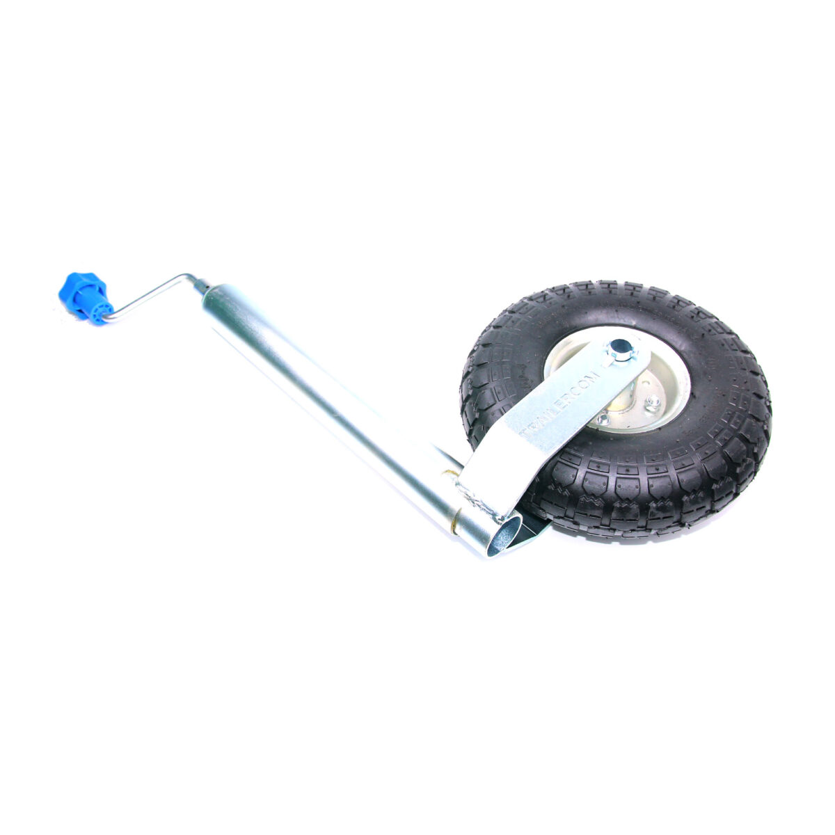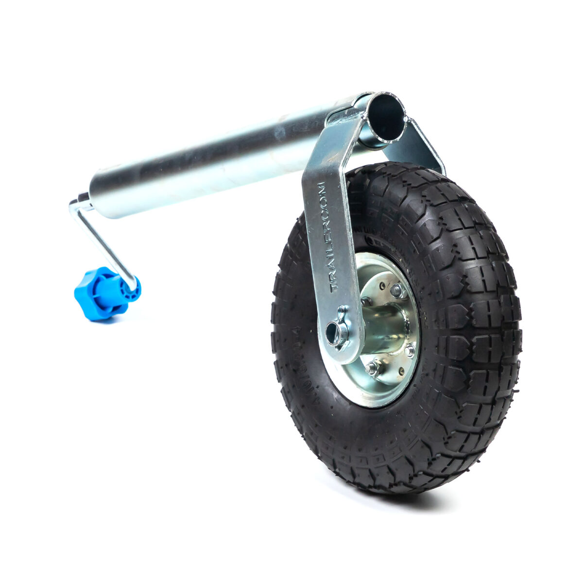 TRAILERCOM PRO. С защитой от проскальзывания и раскручивания. Статическая нагрузка: 500 кг. Труба: Ø48 мм. Высота 665-805 мм. Динамическая нагрузка: 350 кг. Колесо: Ø200*60 мм, резина. Высота пластиковой ручки 120 мм (цвет ручки синий).