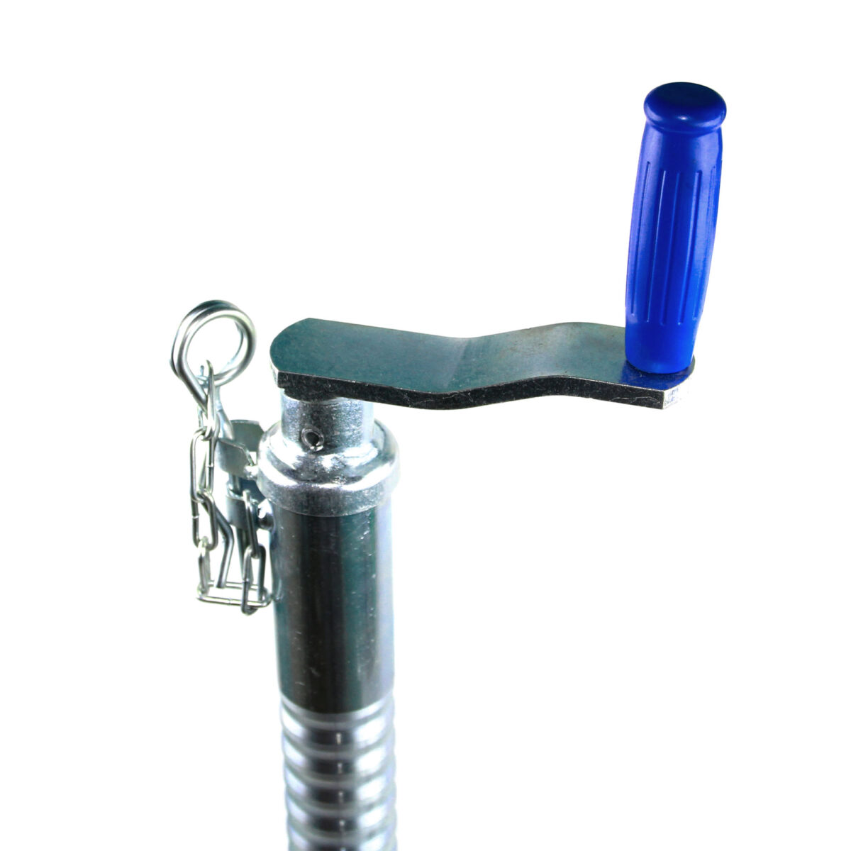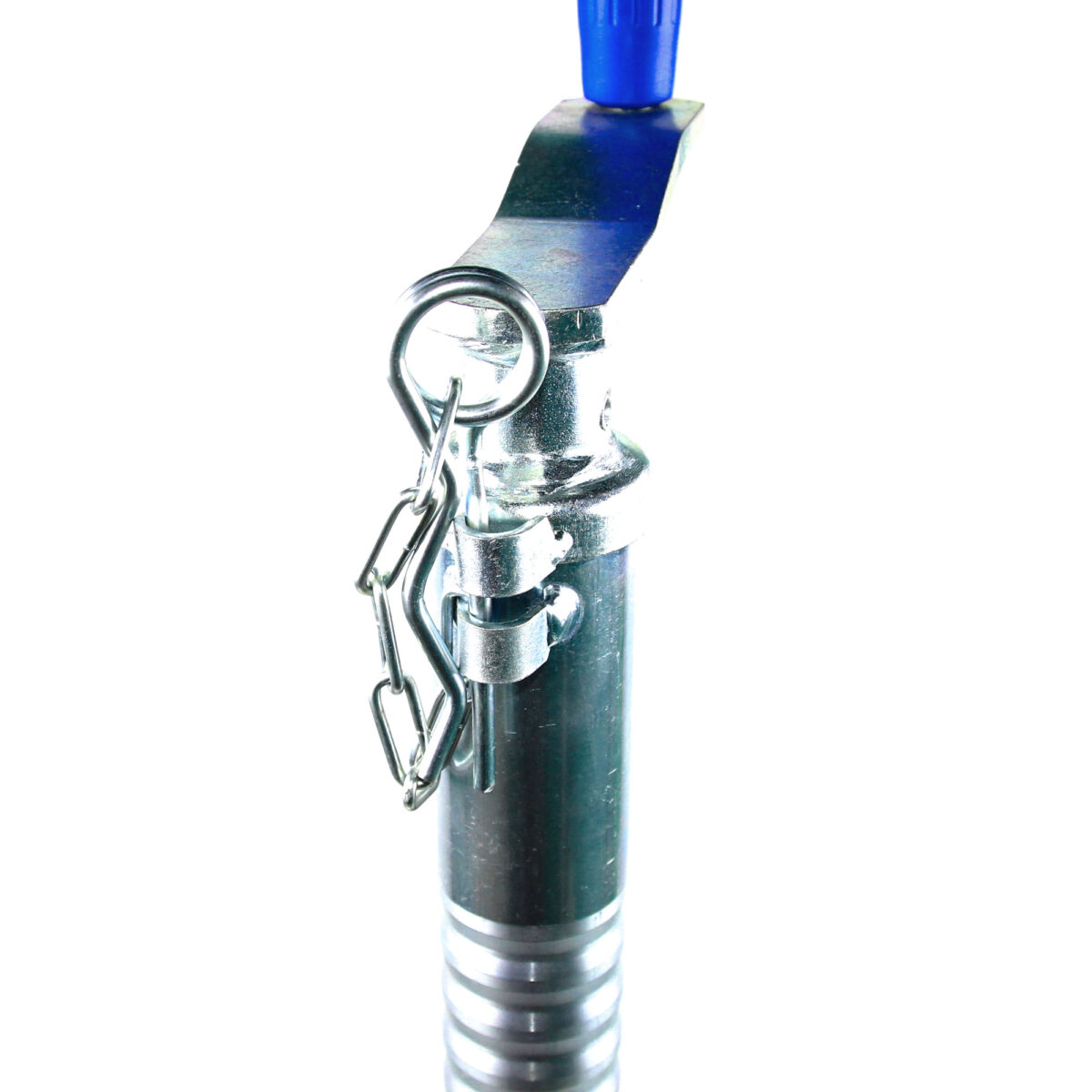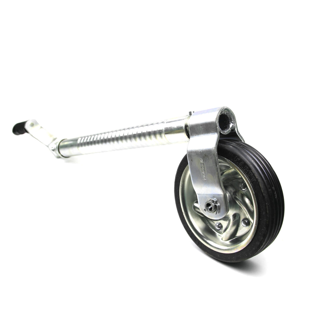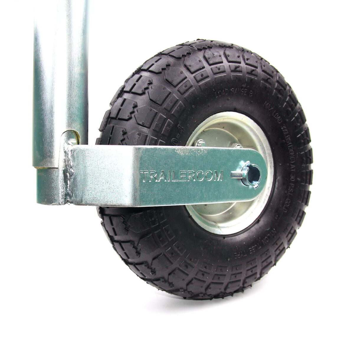 TRAILERCOM PRO. С защитой от проскальзывания и раскручивания. Статическая нагрузка: 500 кг. Труба: Ø48 мм. Высота 665-805 мм. Динамическая нагрузка: 350 кг. Колесо: Ø200*60 мм, резина. Высота пластиковой ручки 120 мм (цвет ручки синий).