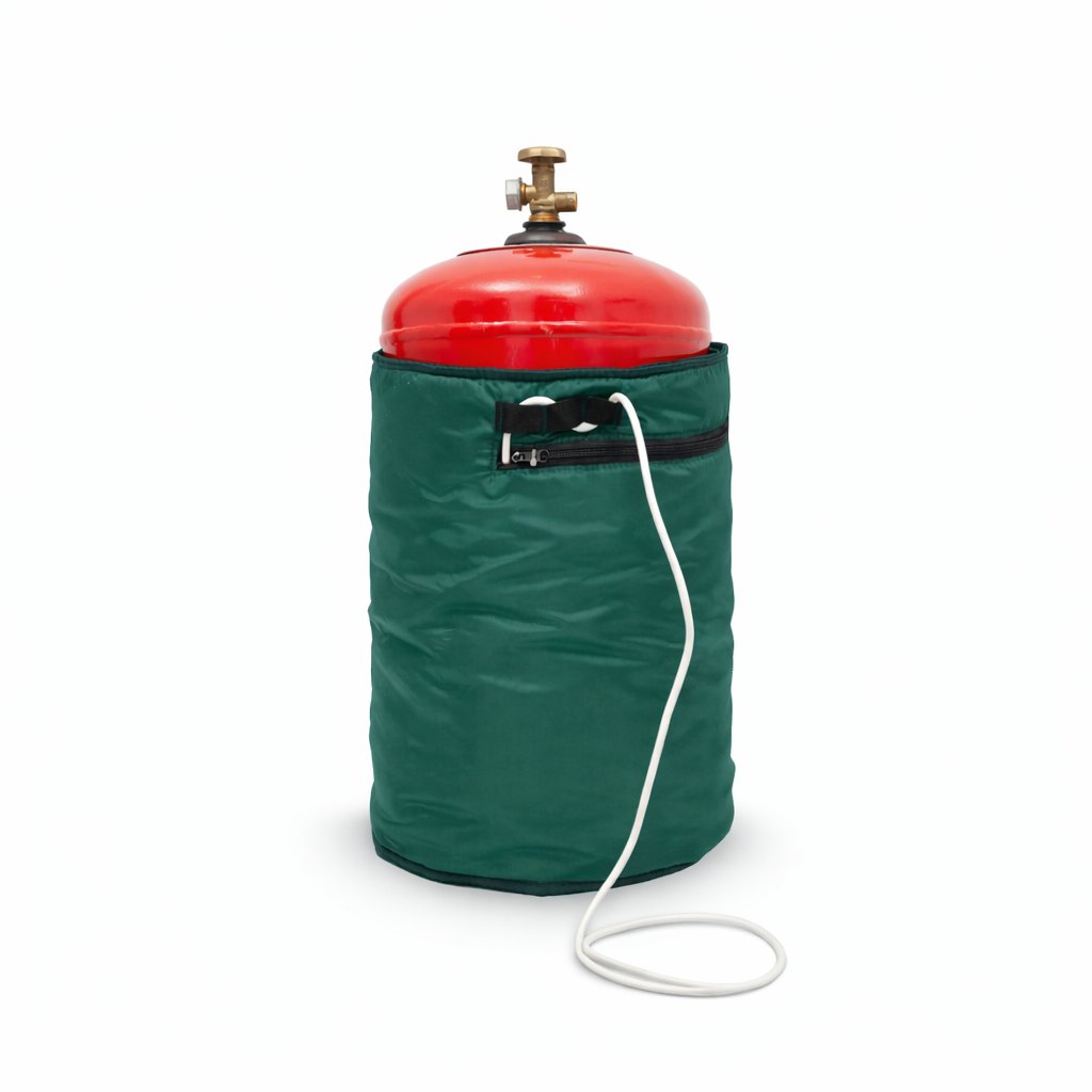 Именно для этой задачи применяются специальные электрические термоматы для газовых баллонов. Они работают по принципу мягкого нагревателя и позволяют поддерживать температуру стенок баллона даже при сильном морозе снаружи.